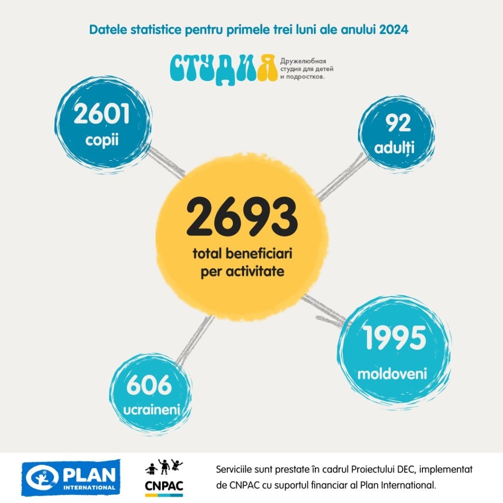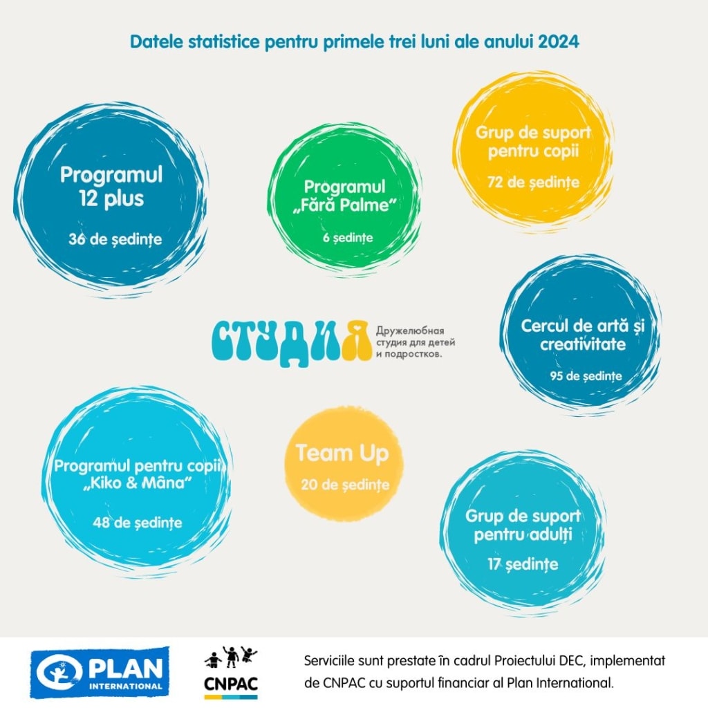 Cele trei spații prietenoase STUDIA, create de Centrul Național de Prevenire a Abuzului față de Copii (CNPAC), continuă să ofere nu doar oportunități continue pentru dezvoltare și comunicare, ci și asistență psihologică și consiliere într-un mediu de liniște și siguranță.