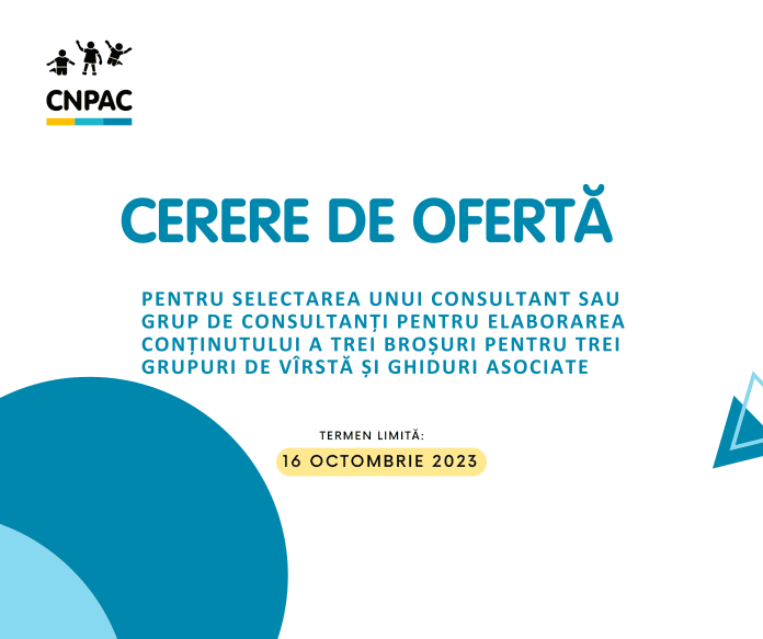 Anunț pentru selectarea unui consultant sau grup de consultanți pentru elaborarea conținutului a trei Broșuri pentru trei grupuri de vîrstă, destinate părinților sau îngrijitorilor care vor susține conversațiile dintre părinți și copii despre abuzul sexual.