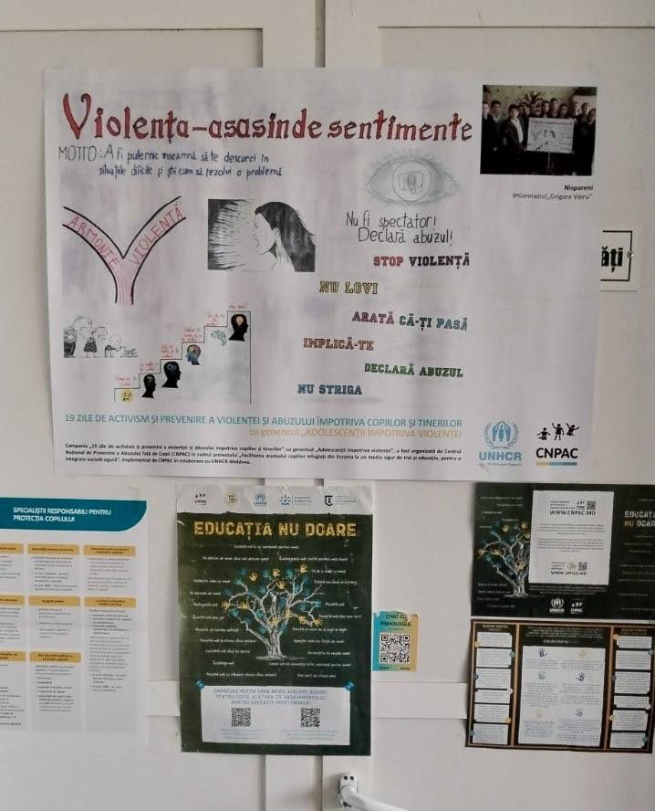Acțiunile desfășurate de adolescente fac parte din campania #𝐞𝐝𝐮𝐜𝐚𝐭𝐢𝐚𝐍𝐔𝐝𝐨𝐚𝐫𝐞, desfășurată de CNPAC în perioada 1-19 noiembrie, cu susținerea UNHCR-Moldova. Campania își propune să sensibilizeze publicul și să promoveze schimbări pozitive în școlile din Moldova.